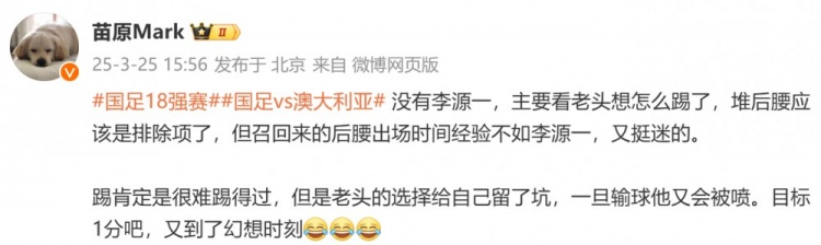 3月25日訊 國(guó)足今晚將在世預(yù)賽杭州主場(chǎng)對(duì)陣澳大利亞,媒體人苗原發(fā)文談到對(duì)國(guó)足陣容的看法。