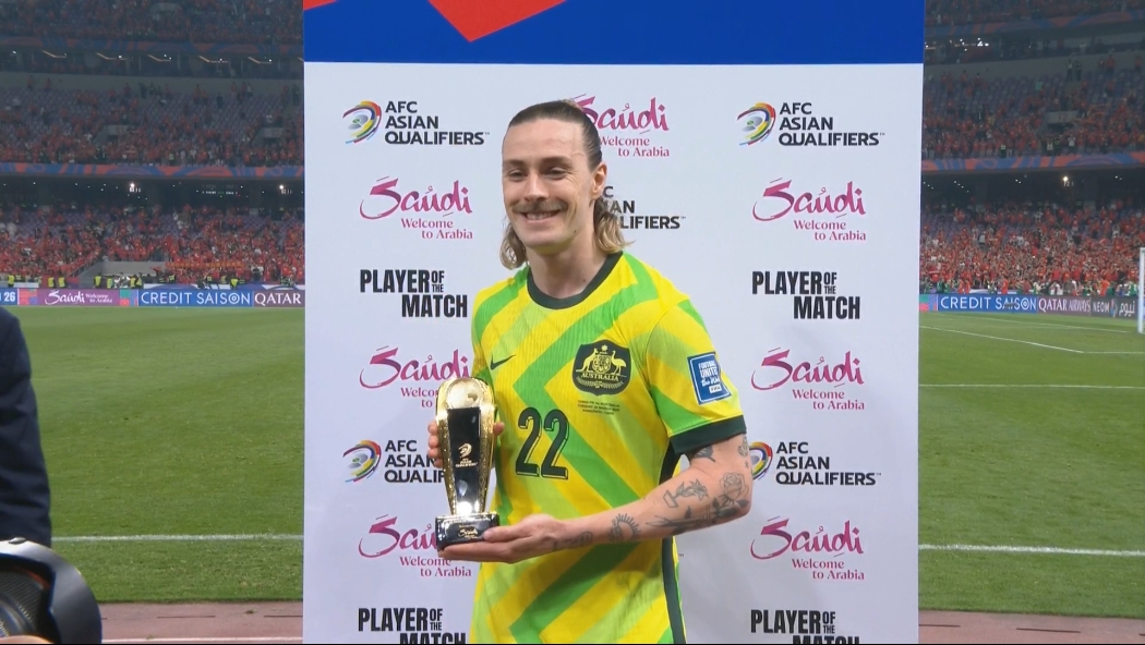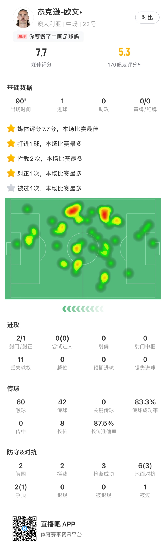 03月25日訊 世預(yù)賽亞洲區(qū)18強賽C組第8輪,國足主場0-2輸給澳大利亞,賽后杰克遜-歐文當選全場最佳!歐文為澳大利亞打入了第一粒進球:
