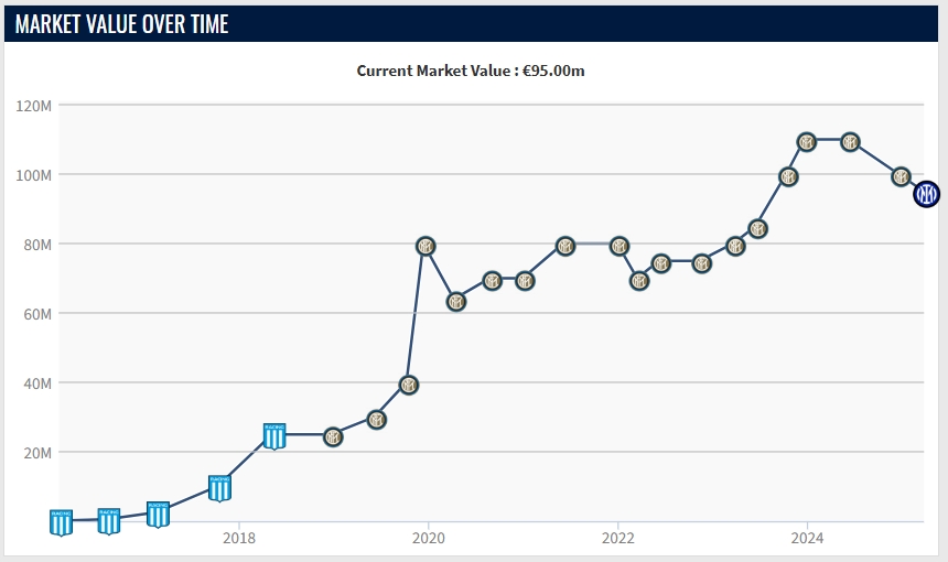 本賽季,勞塔羅為國米出場39次,打進18球、助攻6次。勞塔羅歷史最高身價曾到達1.1億歐元。
