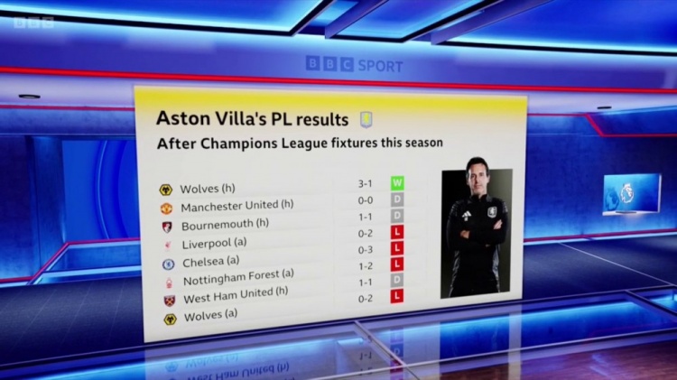 2月2日訊 英超第24輪比賽,維拉客場0-2不敵狼隊(duì)。BBC統(tǒng)計(jì)了本賽季維拉歐冠比賽之后的聯(lián)賽戰(zhàn)績,8場聯(lián)賽維拉僅取勝1場。