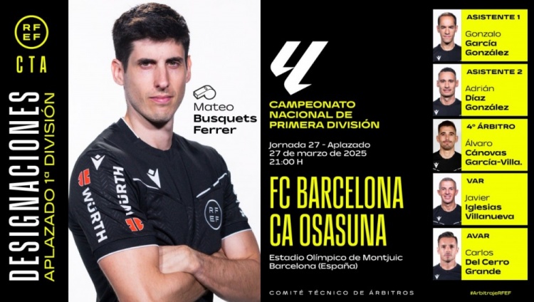 3月25日訊 北京時間3月28日凌晨4:00,2024-25賽季西甲第27輪補賽,巴塞羅那將迎戰(zhàn)奧薩蘇納。賽前,西班牙足協(xié)官方公布了本場比賽裁判組,費雷爾執(zhí)法。