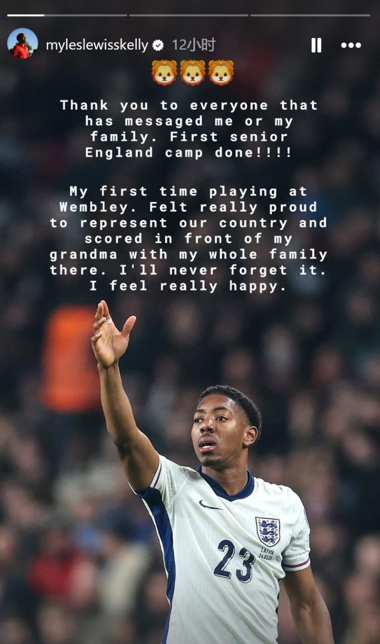 斯凱利寫道:“感謝所有為我和我的家人送上問候的人,首次英格蘭一線隊之旅結(jié)束了?。?!這是我第一次在溫布利球場踢球。能為國出戰(zhàn),并在奶奶和全家面前進球,我倍感驕傲。我永遠不會忘記,也感到非常開心?!?/p>