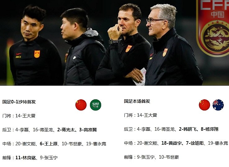 蔣光太、高準翼和王上源缺陣,韓鵬飛、楊澤翔和黃政宇對位頂班,國足的主力陣容并沒有太多秘密可言。就像做客巴林時安排曹永競首發(fā)一樣,伊萬科維奇再次在關鍵戰(zhàn)中使用了狀態(tài)不俗但缺少大賽經驗的球員。為了減輕黃政宇的壓力,伊萬科維奇使用了“三后腰”體系,謝文能和徐皓陽的主要精力就在于保護防線。