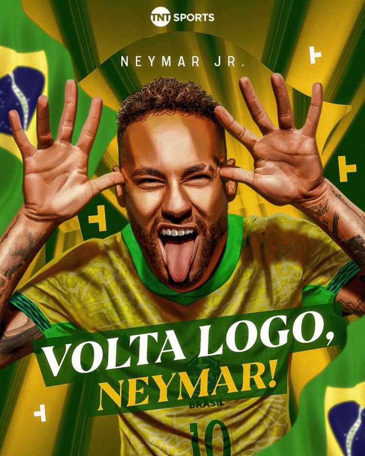 內(nèi)馬爾因傷退出本期巴西隊名單,TNT巴西在社交媒體上曬出內(nèi)馬爾的海報,配文:“真想念你啊,球星!內(nèi)馬爾沒有參加這次國際比賽日的比賽,但我們真的很想再次看到他穿上巴西隊的球衣,他真是太令人想念了!”
