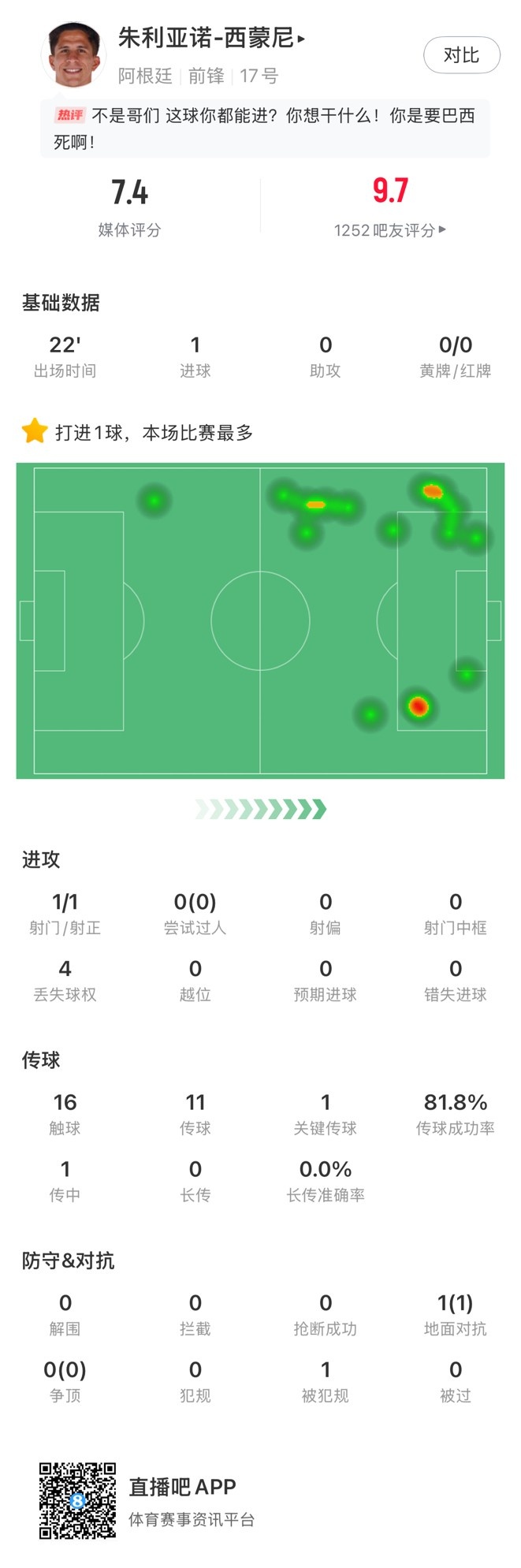虎父無犬子!小西蒙尼替補(bǔ)出場3分鐘小角度破門,賽后獲評7.4分