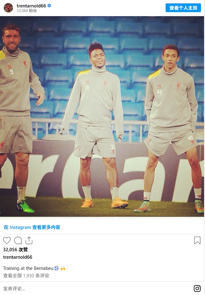 阿斯報(bào)挖出阿諾德10年前INS首個(gè)帖子:在伯納烏進(jìn)行訓(xùn)練