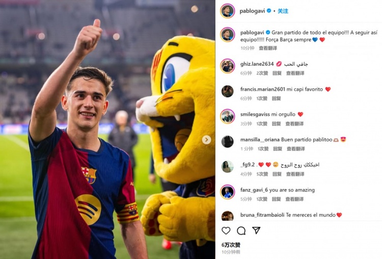 他也在賽后通過(guò)社媒曬出自己的慶祝照,并配文:“全隊(duì)踢出了一場(chǎng)精彩的比賽!繼續(xù)加油,巴薩永遠(yuǎn)前進(jìn)!”