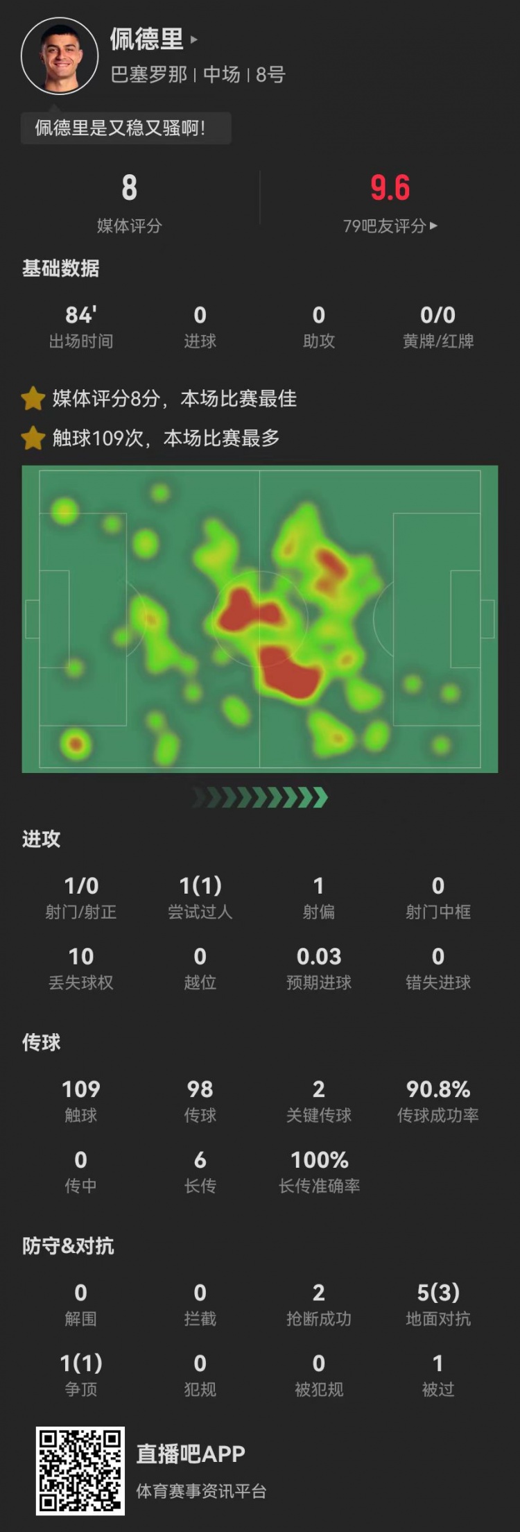 當(dāng)選西甲官方全場最佳!佩德里本場2關(guān)鍵傳球+6長傳6成功+2搶斷