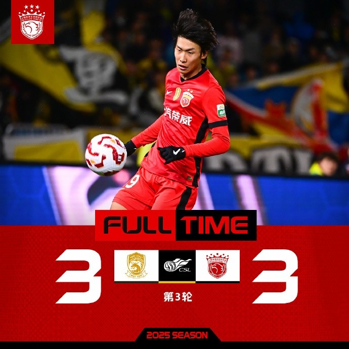 2025賽季中超聯(lián)賽第3輪,青島西海岸3比3上海海港。