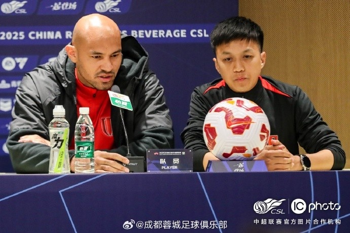 3月28日下午,成都蓉城隊(duì)主教練徐正源和隊(duì)員費(fèi)利佩出席了2025賽季中超聯(lián)賽第3輪客場對陣北京國安的賽前新聞發(fā)布會(huì)。