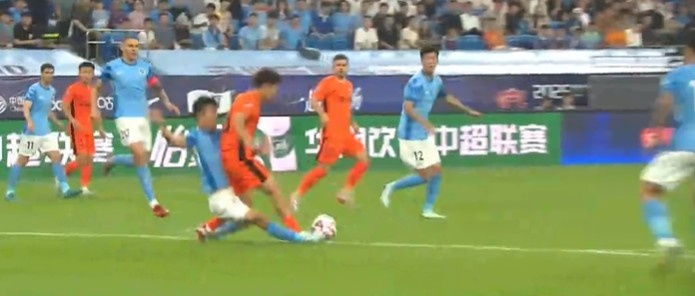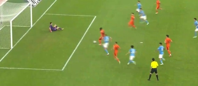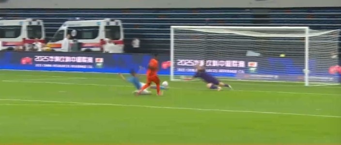 第9分鐘,云南獲得點球!胡睿寶禁區(qū)身后鏟倒葉楚貴犯規(guī),隨后裁判經(jīng)過var提示判罰點球,奧斯卡主罰點球被撲出,隨后跟上補(bǔ)射破門,深圳0-1云南玉昆。↓