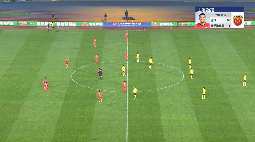海港再扳一球!19歲李新翔助攻古斯塔沃破門,本場已1射1傳!海港扳回一球暫2-3青島西海岸。