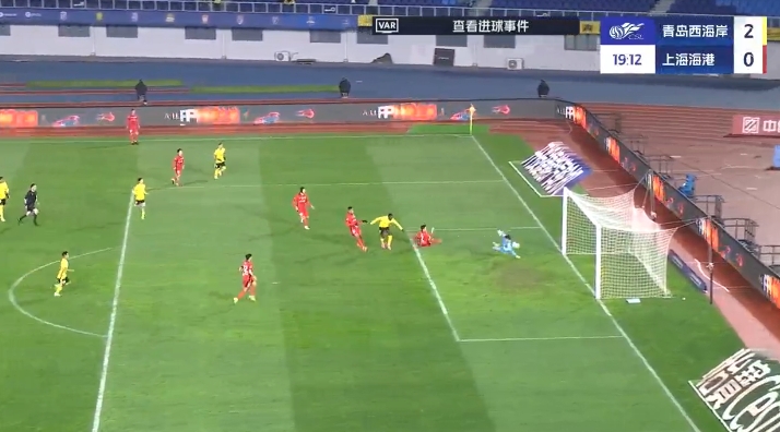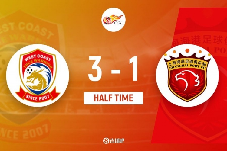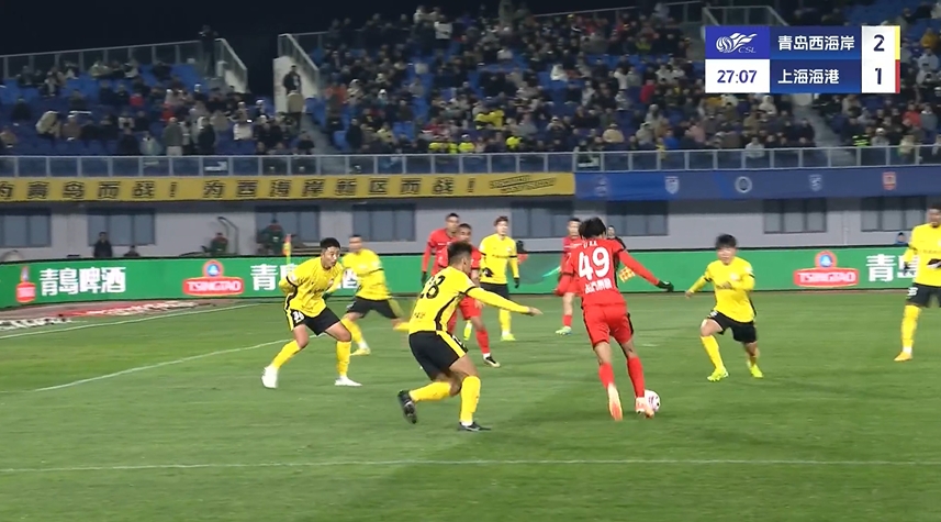 上半場比賽結(jié)束,上海海港客場暫時1-3落后青島西海岸。