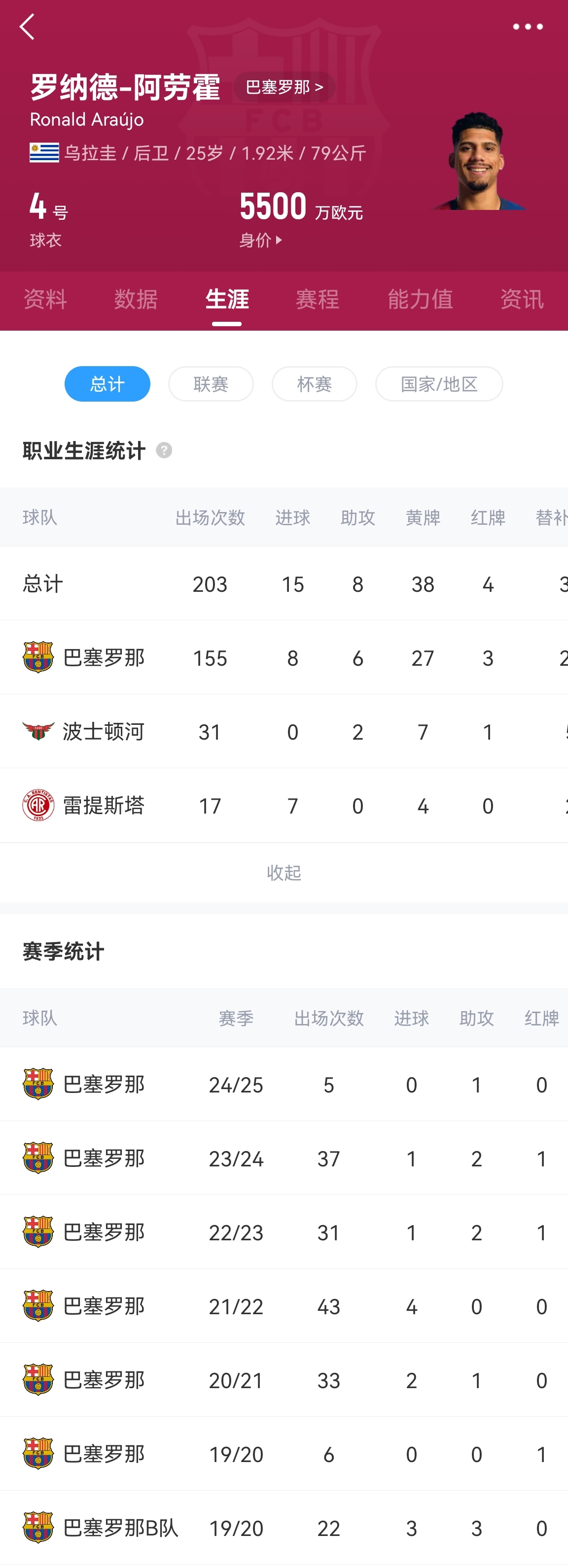 25歲的烏拉圭中衛(wèi)阿勞霍,2018年加盟巴薩,至今代表球隊出戰(zhàn)155場比賽。本賽季阿勞霍在長期傷缺后復(fù)出,代表巴薩出場5次。今年冬窗,阿勞霍曾與尤文傳出緋聞,最終阿勞霍還是選擇與巴薩續(xù)約,他原本與巴薩的合同將在2026年6月到期。
