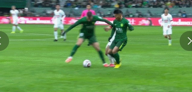 上半場(chǎng)補(bǔ)時(shí)6分鐘,國(guó)安1-0成都蓉城。
