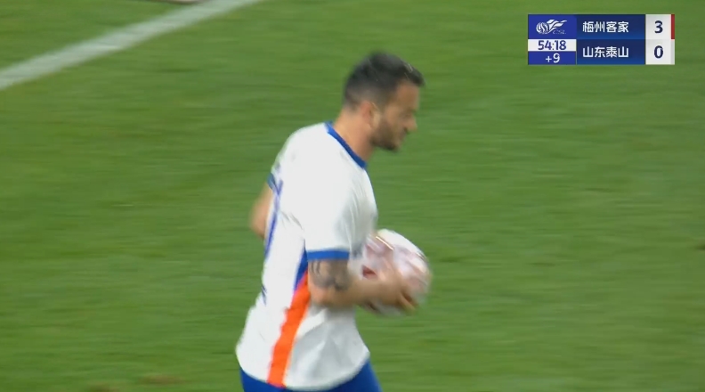 泰山1-3梅州半場數據:射門9-3,射正3-3,控球率62%-38%