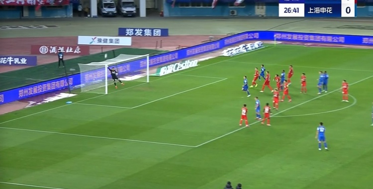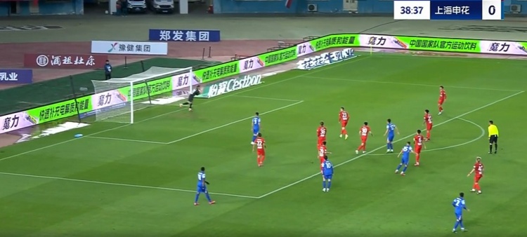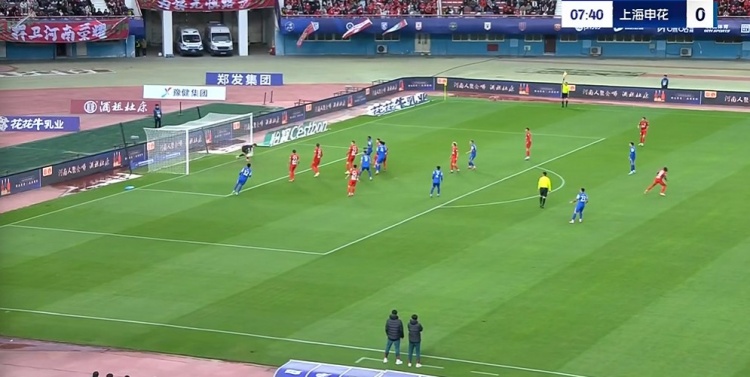 半場-河南1-0申花 邁達納頭球破門吳曦門線解圍高天意定位球中框