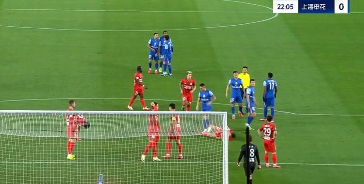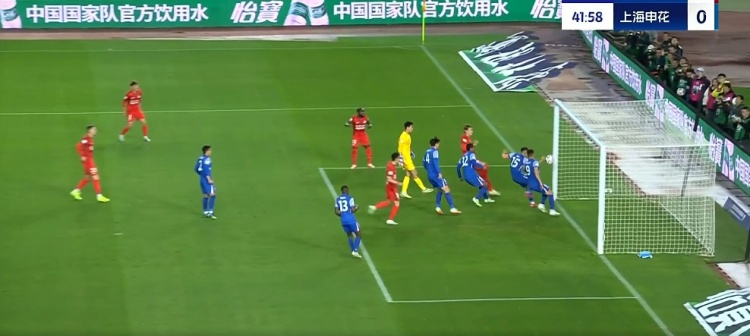 第27分鐘,申花前場左側(cè)定位球機會,高天意主罰,皮球直奔十分角,最終擊中門框彈出底線↓