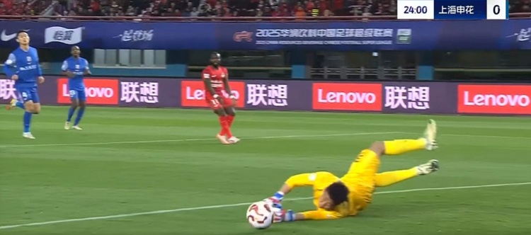 第8分鐘,申花前場右側(cè)定位球開到禁區(qū),路易斯頭球攻門角度太正被門將沒收,同時也是越位在先了↓
