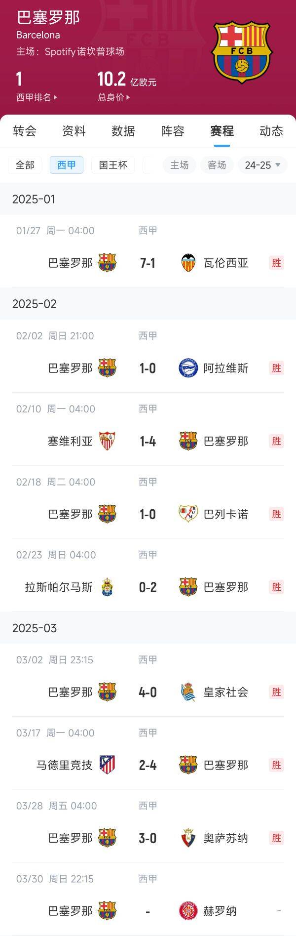 - 2025年03月28日 西甲8連勝!巴薩3-0奧薩蘇納3分領(lǐng)跑 費(fèi)蘭萊萬破門奧爾莫點(diǎn)射+傷退