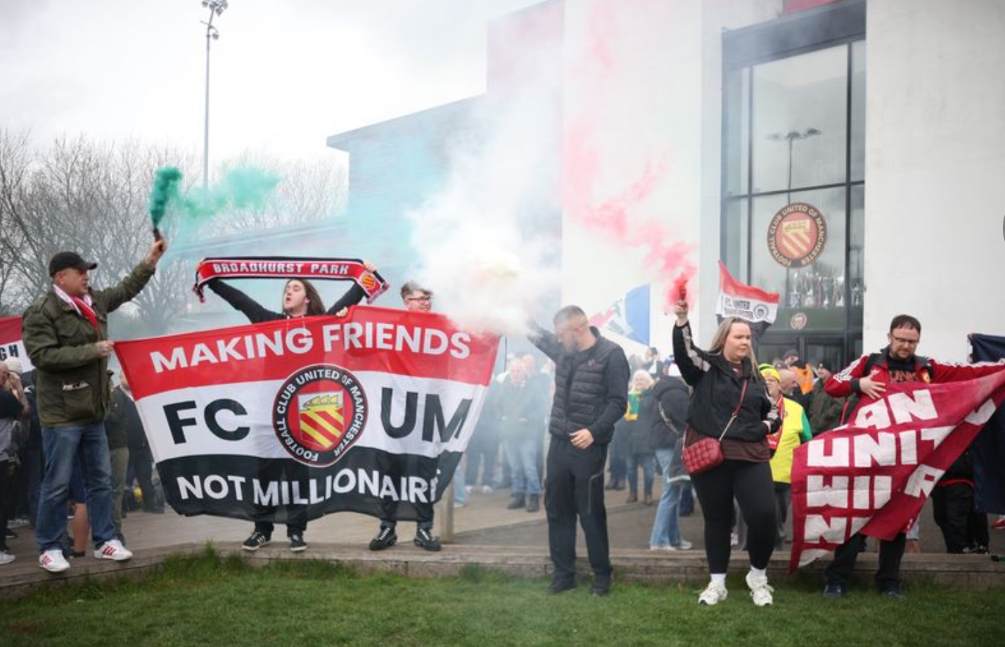 曼聯(lián)重要球迷組織1958近期持續(xù)在老特拉福德球場外抗議格雷澤家族所有權(quán),以及其他影響球迷文化的議題,今日兩大球迷群體共同表達(dá)對美資持有曼聯(lián)的反對立場。此外,曼聯(lián)球迷1958宣布將在下周日在老特拉福德球場與曼城的德比中舉行靜坐示威。