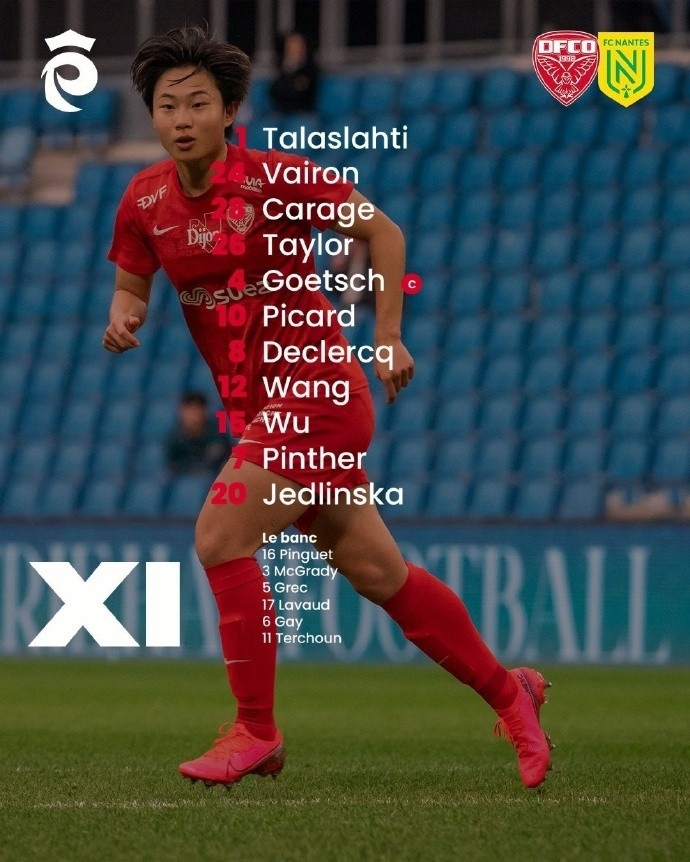 法甲第19輪第戎女足主場(chǎng)3-0戰(zhàn)勝南特女足,吳澄舒、王妍雯首發(fā)出場(chǎng),第17分鐘,吳澄舒接隊(duì)友左路傳中,頭球破門(mén),首開(kāi)紀(jì)錄,連續(xù)兩場(chǎng)有進(jìn)球入賬。上輪聯(lián)賽第戎客場(chǎng)2-0戰(zhàn)勝勒阿弗爾女足,吳澄舒也斬獲一粒進(jìn)球。王妍雯打滿(mǎn)90分鐘,傷停補(bǔ)時(shí)階段被隊(duì)友換下。
