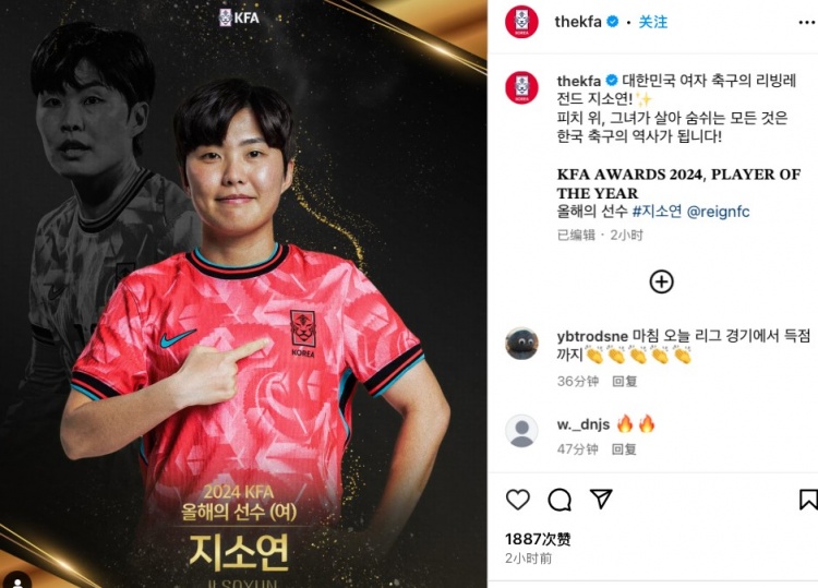 3月31日訊 韓國足協(xié)今日發(fā)布公告,公布了該足協(xié)2024年度各項最佳獎項得主,其中年度最佳女足球員得主為韓國女足隊長池笑然,這是她生涯第8次獲得該獎項。