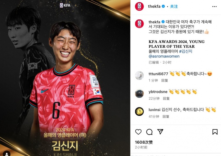 3月31日訊 韓國足協(xié)今日發(fā)布公告,公布了該足協(xié)2024年度各項(xiàng)最佳獎(jiǎng)項(xiàng)得主,其中年度最佳年輕球員得主為18歲小將梁民革。