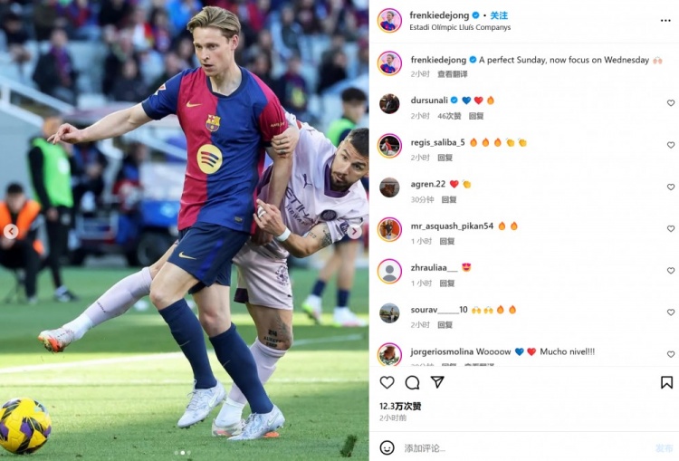 一夜重返巔峰!德容社媒曬照:完美的周日,接下來專注再戰(zhàn)馬競(jìng)