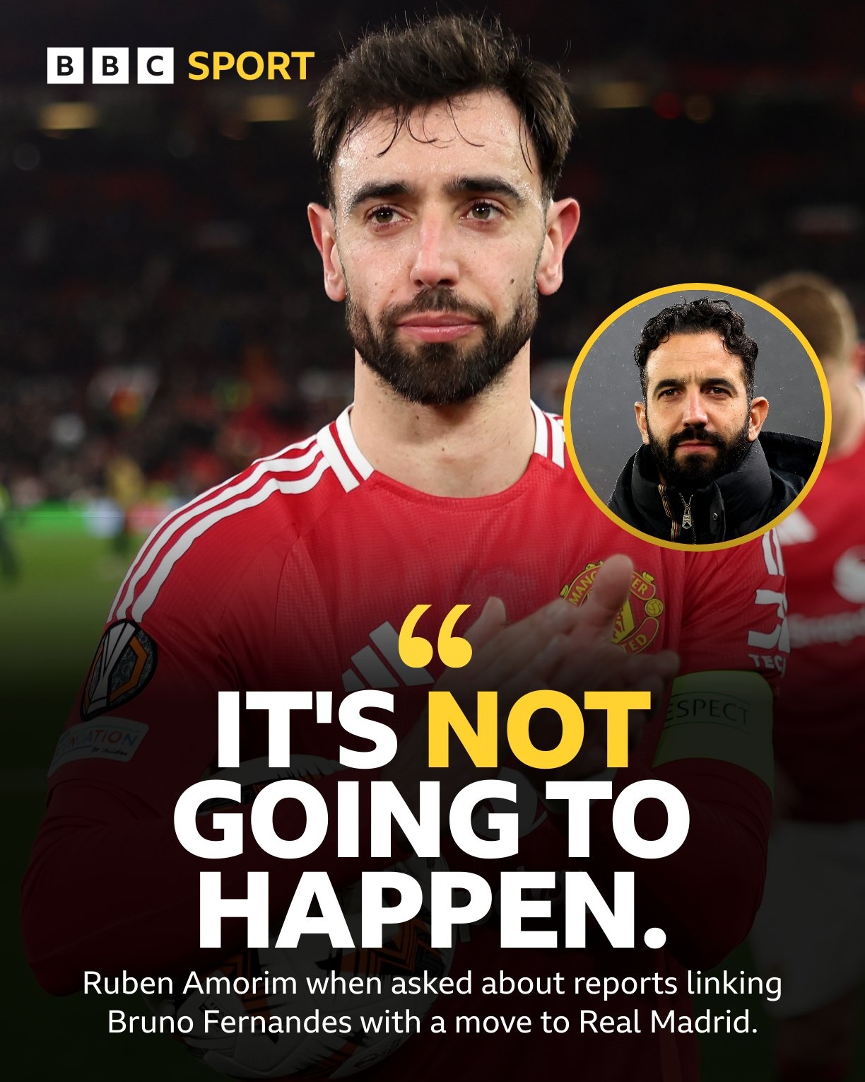 04月01日訊 日前英國《每日星報》爆出猛料,稱皇馬可能考慮花費9000萬英鎊挖角曼聯(lián)隊長B費,甚至已經(jīng)派球探多場考察。今天的新聞發(fā)布會上,曼聯(lián)主教練阿莫林對這一報道進行了否認。