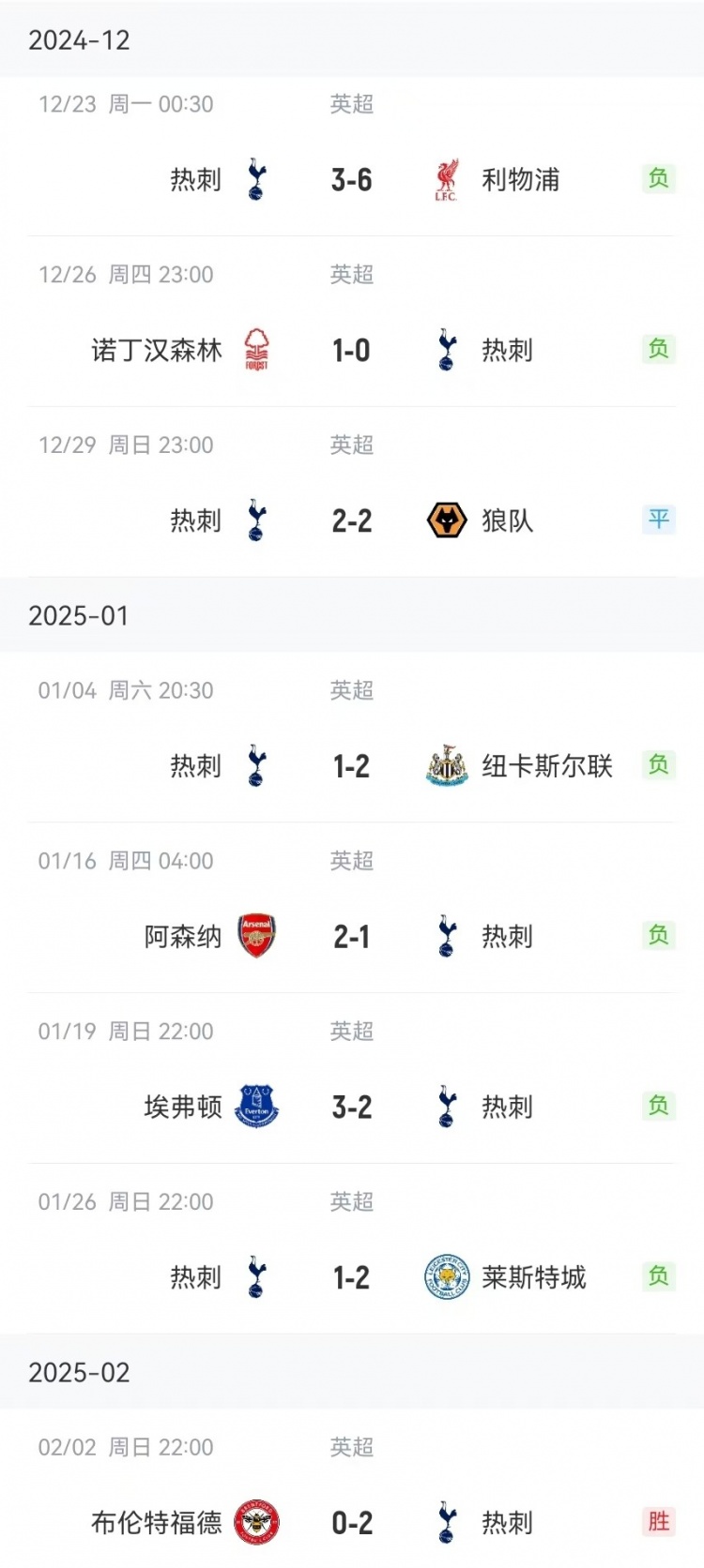 數(shù)據(jù)統(tǒng)計顯示,熱刺上次在英超贏球還是12月中旬5-0副班長南安普頓,自那之后他們遭遇1平6負(fù)。
