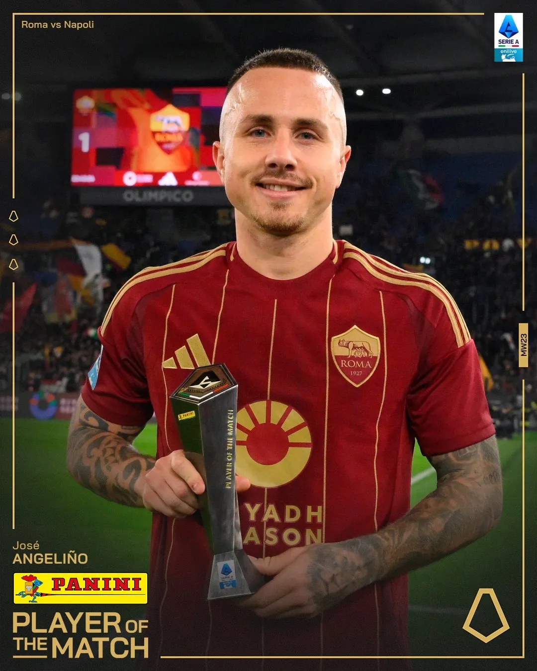 2月3日訊 羅馬在本輪意甲1-1絕平那不勒斯,進(jìn)球功臣安吉利諾在賽后當(dāng)選意甲官方全場最佳。