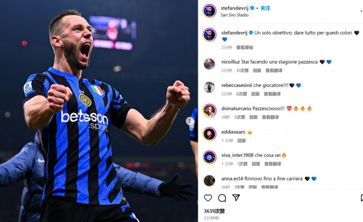 德弗里也在賽后通過社媒曬出自己怒吼慶祝的照片,并配文:“我們只有一個目標:那就是為藍黑色竭盡全力?!?/p>