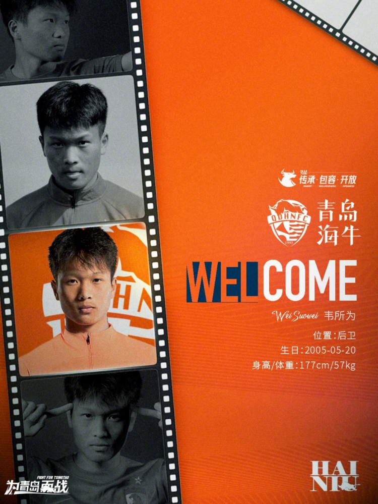 雖然還很年輕,但韋所為未來光明,期待小將在場(chǎng)上能夠敢打敢拼,在青島海牛真正有所為!新賽季,我們一起為青島而戰(zhàn)!