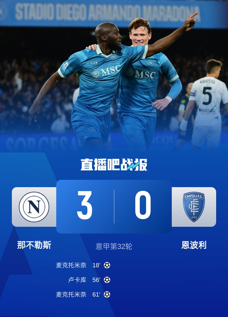 那不勒斯本輪3-0擊敗恩波利,盧卡庫和麥克托米奈聯(lián)手制造一場大勝!