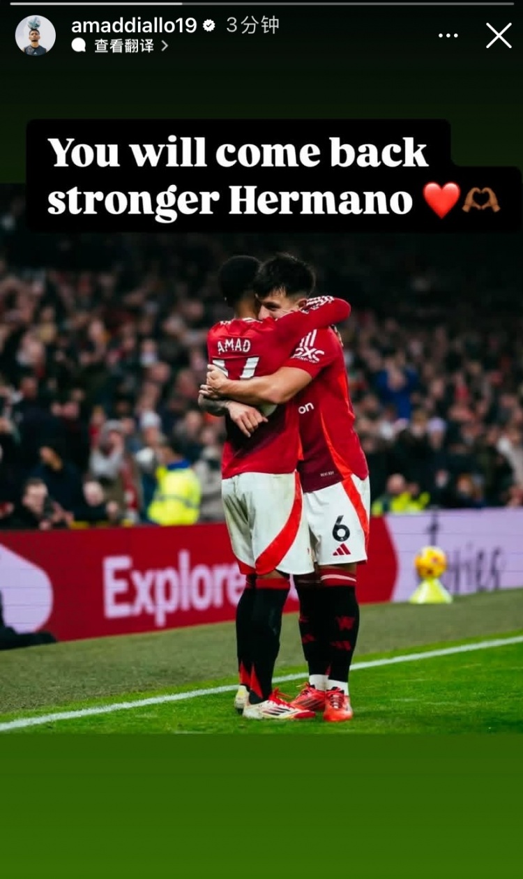2月4日訊 多家媒體報道,曼聯(lián)中衛(wèi)利馬遭遇十字韌帶撕裂重傷,預(yù)計傷缺六個月時間。阿瑪?shù)赂律缑剑蚶R送上安慰。