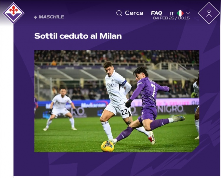 2月4日訊 佛羅倫薩官方宣布,將球隊邊鋒索蒂爾租借給米蘭。