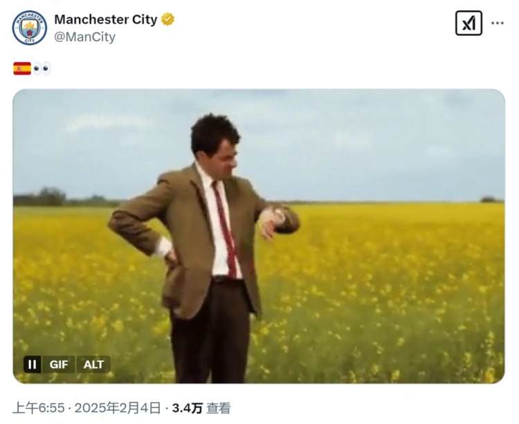 曼城官方社媒曬出憨豆先生焦急等待并看表的動(dòng)圖,配上了西班牙國旗,以及眼睛的表情符號(hào),預(yù)熱尼科-岡薩雷斯加盟,隨后曼城官宣了這筆交易。