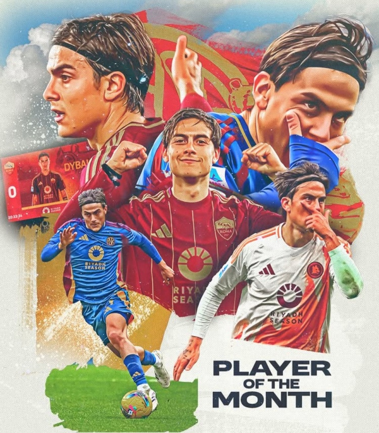 7場1助攻!官方:迪巴拉當(dāng)選羅馬1月最佳球員