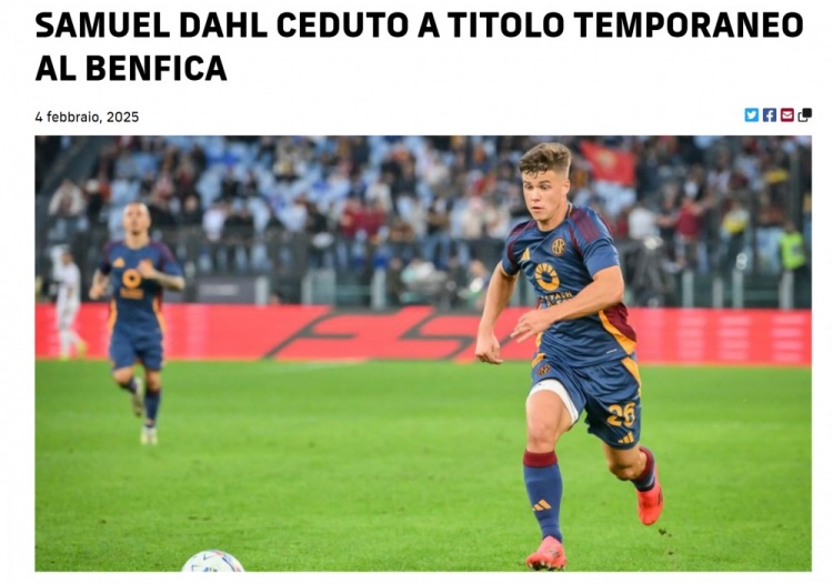 官方:羅馬21歲邊衛(wèi)達(dá)爾租借本菲卡,租借60萬(wàn)歐+買斷選項(xiàng)1000萬(wàn)