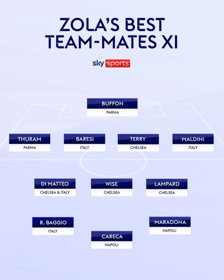 佐拉選生涯隊友最佳陣: