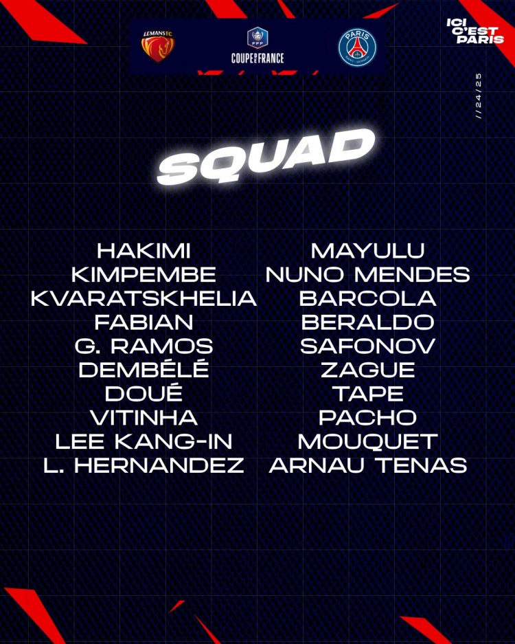 巴黎對(duì)勒芒大名單