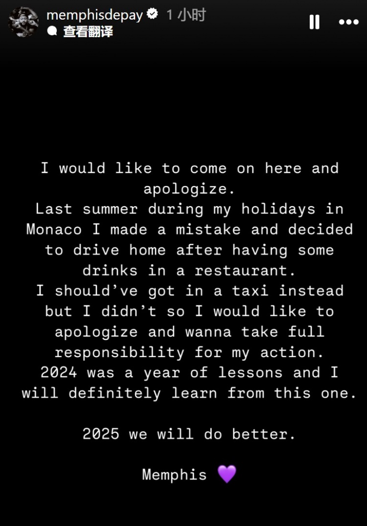 德佩寫道:“我想向大家道歉。去年夏天在摩納哥度假時(shí),我犯了一個(gè)錯(cuò)誤,在餐廳喝了點(diǎn)酒后我決定開車回家。我原本應(yīng)該打車的,但我沒這么做,所以我想道歉,并愿意為我的行為承擔(dān)全部責(zé)任?!?/p>