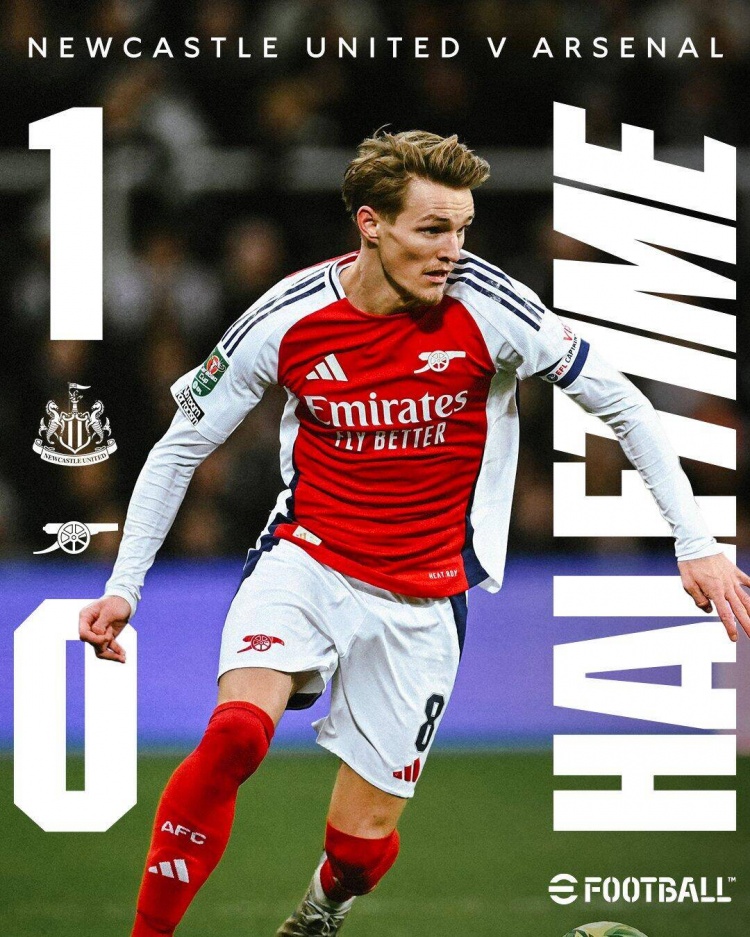 半場結束,阿森納暫0-1紐卡斯爾。