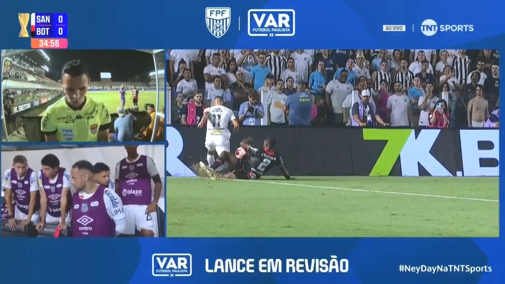 第34分鐘,博塔弗戈SP球員手球,裁判親自查看回放后判點(diǎn),桑托斯通過點(diǎn)球1-0取得領(lǐng)先。內(nèi)馬爾在場(chǎng)邊慶祝!