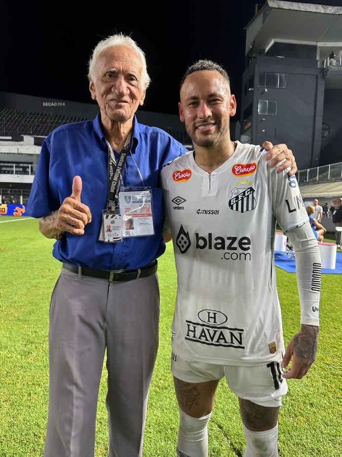 桑托斯曬內(nèi)馬爾與俱樂部79歲最老員工合影:兩人都是桑托斯的偶像