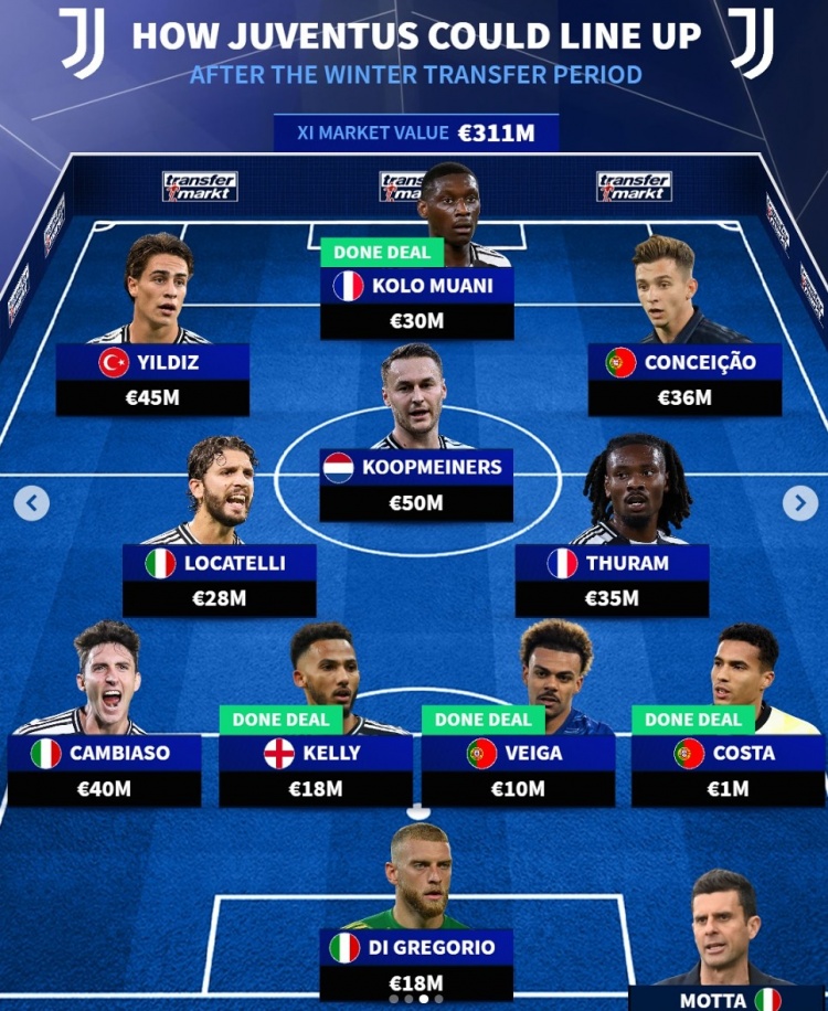 2月7日訊 五大聯(lián)賽冬窗已經(jīng)結(jié)束,《轉(zhuǎn)會(huì)市場(chǎng)》也根據(jù)補(bǔ)強(qiáng)預(yù)測(cè)了尤文的主力陣容,多位租借加盟的新援在列。
