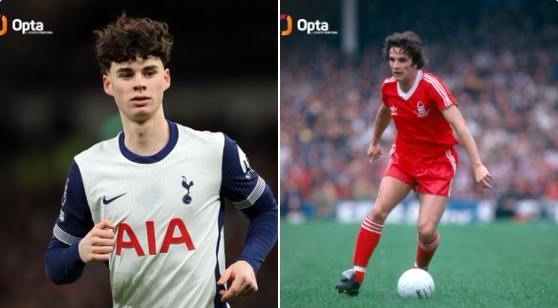 數(shù)據(jù)統(tǒng)計(jì)顯示,在1980年聯(lián)賽杯半決賽的安菲爾德球場,阿奇-格雷的爺爺弗蘭克-格雷也曾代表諾丁漢森林首發(fā)出戰(zhàn)。