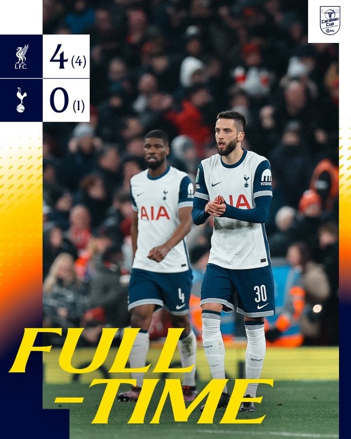 2月7日訊 熱刺在本輪聯(lián)賽杯0-4客負(fù)利物浦,總比分1-4被淘汰出局。