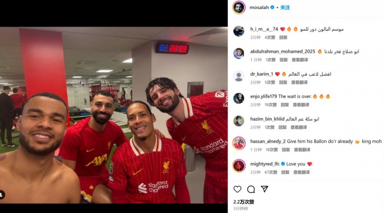 薩拉赫也一如既往在賽后通過社媒曬出進(jìn)球功臣的合照但并未附加文字內(nèi)容,加克波、索博斯洛伊、范迪克在列。